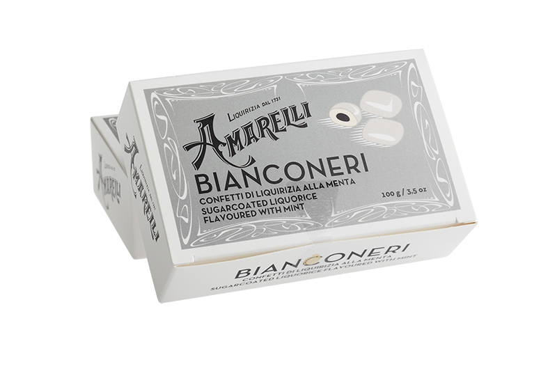 Amarelli Bianconeri (100g) Grigia, Lakridsdragée m. mint